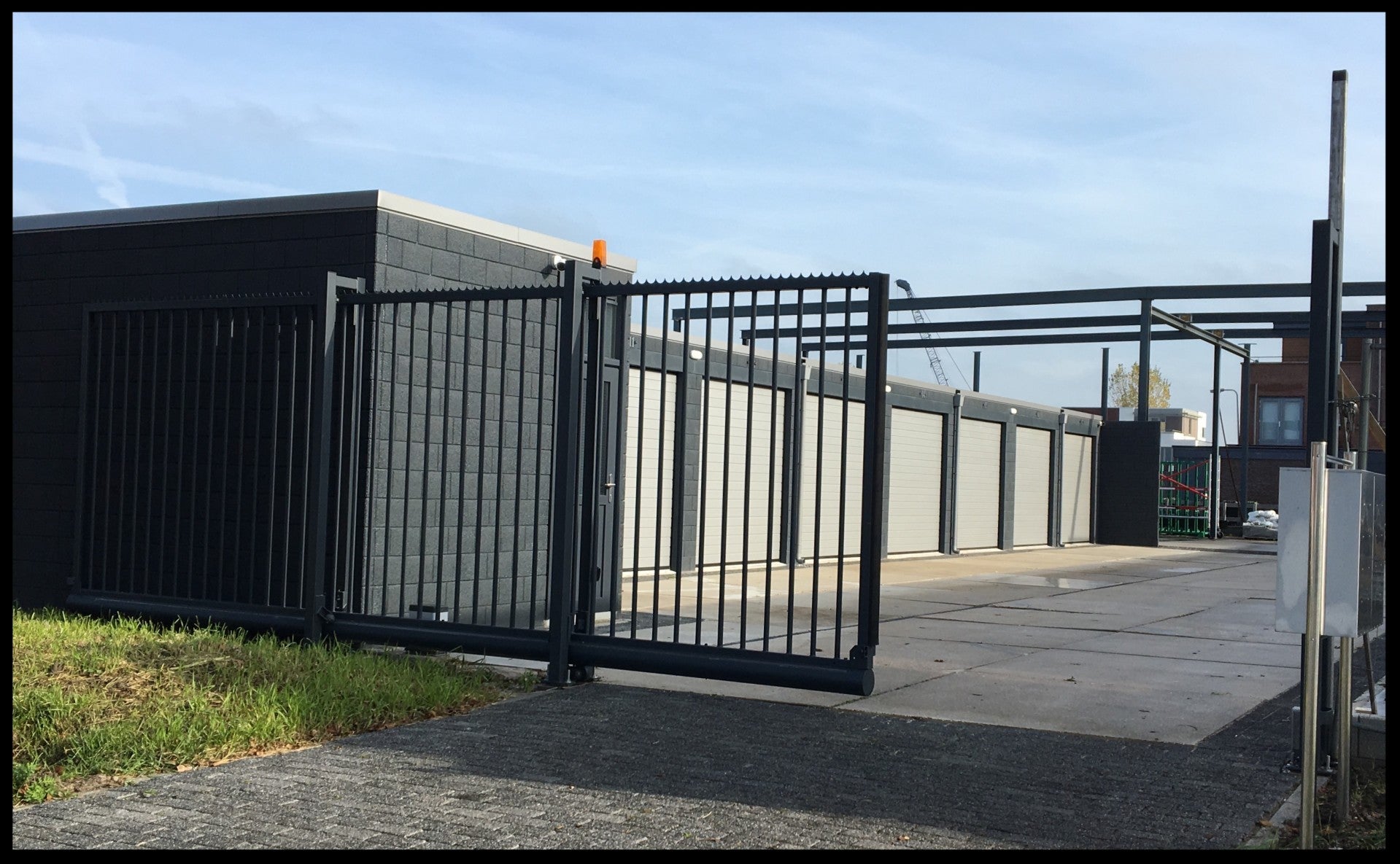 Het GarageComPlex is 24/7 direct toegankelijk en wordt bewaakt d.m.v beveiligingscamera's. De veiligheid van uw bezit is gewaarborgd met een automatische toegangspoort met 24/7 camerabewaking. Via deze elektrische schuifpoort, die u kunt openen via uw mobiele telefoon, kunt u de garage units van GarageComPlex betreden. Uitvoering is met audio-GSM smartphone combinatie incl pincodebediening schuifpoort.
